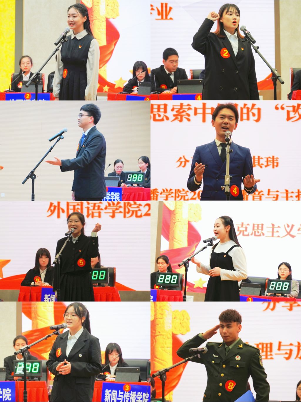 经过激烈角逐,马克思主义学院、物理与电子信息学院代表队荣获大赛一等奖,外国语学院、法学院、教育科学学院、新闻与传播学院代表队获二等奖,经济管理学院、历史学院、文学院、化学与材料科学学院、地理与旅游学院、生命与科学学院代表队获三等奖。另有六名选手荣获大赛“最佳风采奖”。