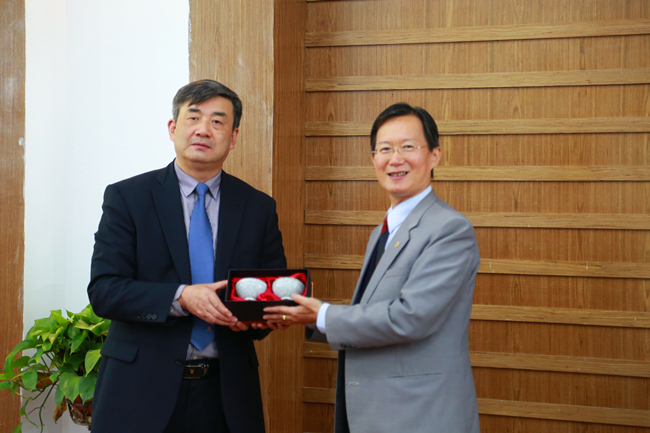 在交流座谈会上,王绍武代表学校对台湾兄弟高校的到访表示了热烈欢迎,并系统介绍了学校的办学历史及现状。他表示,作为省内建校最早的高等学府,安徽师范大学学科门类齐全、教育层次丰富、科研平台众多,期待皖台两地高校能够进一步推动并深化建立校际战略合作。本次代表团领队、台湾敏惠医专校长叶至诚对学校的热情接待表达了诚挚的感谢,还深情回顾了多年来与安徽高校交流互动的点点滴滴。台湾师范大学人事主任纪茂娇高度肯定了我校近年来的快速发展,并希望能尽快与学校联谊合作,开展更加紧密的经验交流与资源分享。会后,主宾双方还互赠了纪念品。