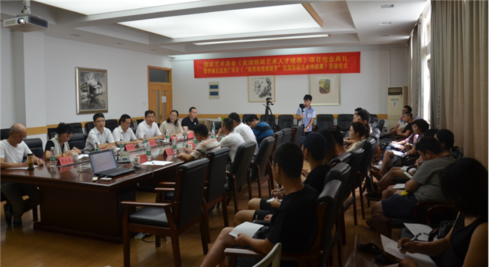 随后,高飞介绍了国家艺术基金2017年度传播交流推广项目《“铁骨画魂铸新梦”芜湖铁画艺术作品展》的情况,并宣布项目开始启动。在结业典礼结束后,全体人员到铁画工作室观摩了学员们创作的铁画作品。