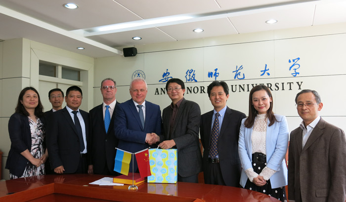 4月18日上午,外事办主任黄圣炯、外事办副主任刘东合和杜俊、外国语学院副院长吴世红在国教院会客厅共同会见了代表团成员。双方就安师大和扎波罗热国立大学携手共建孔子课堂的诸多事宜进行了详尽的商讨,在教学组织方式、教学办公硬件、管理机制、双方的权利与义务等方面达成一致意见。