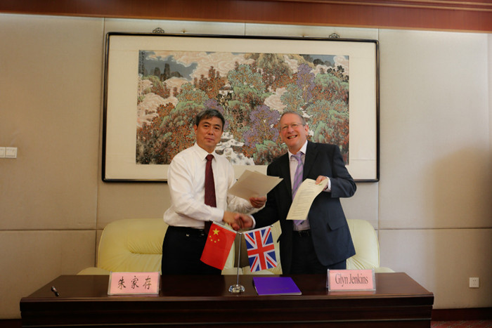 会见后,朱家存和Glyn教授分别代表双方学校签署了两校合作谅解备忘录。之后,代表团一行还在朱校长和其他参会人员的陪同下参观考察了我校图书馆、博物馆和新校区。