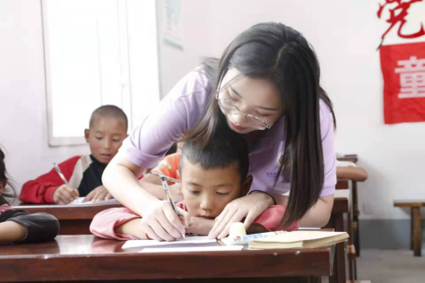 (图为宁嘉惠参与“童伴计划”留守儿童亲情陪护公益项目)