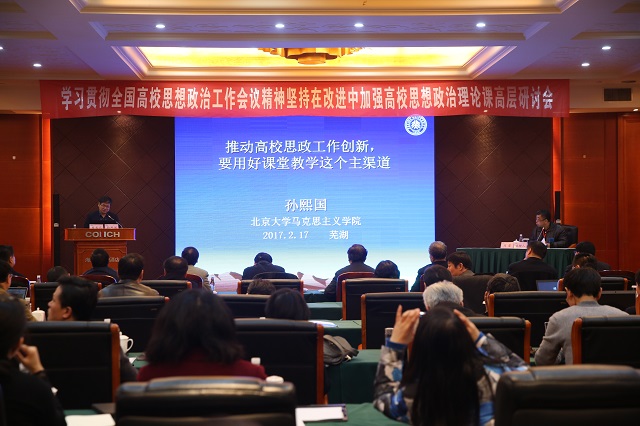 会议紧紧围绕习近平总书记在全国高校思想政治工作会议上的重要讲话精神展开研讨,在深刻领悟习近平总书记重要讲话精神的基础上拓展思路,研讨了提升高校思想政治理论课教育教学效果的方法,交流了不同高校在思想政治理论课教育教学方面的有益做法,并就高校思想政治理论课如何在改进中加强,落实好高校“培养什么人”、“如何培养人”以及“为谁培养人”这一根本问题展开了充分讨论,形成以下共识性认识。