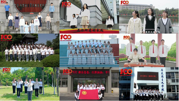 安徽师大各学院团委接过接力棒,结合自身专业特色,以新颖多样的形式传唱《强国一代有我在》《一起向未来》《少年中国说》《错位时空(五四版)》《我和我的祖国》等青春正能量歌曲,以实际行动庆祝中国共青团成立一百周年。