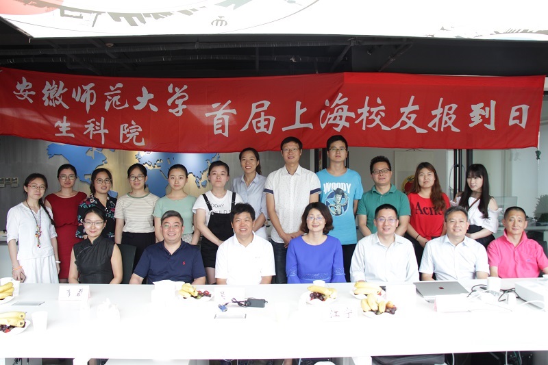 本网讯 (生科院在沪校友会祁福娟 谭尚健 张丁红) 8月26日上午,上海校友会举办了“安徽师范大学生命科学学院首届上海校友报到日”活动。我校校友工作办公室副主任江宁、生科院党委书记蒋学波一行应邀出席。生科院杰出校友国家杰出青年科学基金获得者、上海交通大学免疫学研究所副所长李斌教授,生科院校友中科院生物化学与细胞生物学研究所副研究员周小龙及上海熠晨生物科技公司总经理吴军,经管学院校友陈玲、李磊等多位嘉宾出席活动。本次活动由生科院上海校友会秘书长翟晓峰主持。