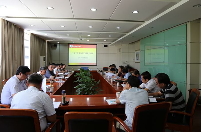 (本网讯 纪委办 王俊恒) 为认真贯彻落实2017年全省教育系统党风廉政建设工作会议精神和省委教育工委、省教育厅“五个专项治理”工作部署,9月14日下午,学校纪委组织召开“五个专项治理”督查汇报会,监督检查学校“小金库”专项治理“回头看”、基建采购突出问题专项治理、高校科研经费规范管理专项治理、师德师风专项治理、教育扶贫领域突出问题专项治理开展情况。校纪委委员,党风党纪监督员、特约监察员,监察处、科研处、财务处、基建处主要负责人以及专职纪检监察干部参加会议。汇报会由校纪委书记程度主持。
