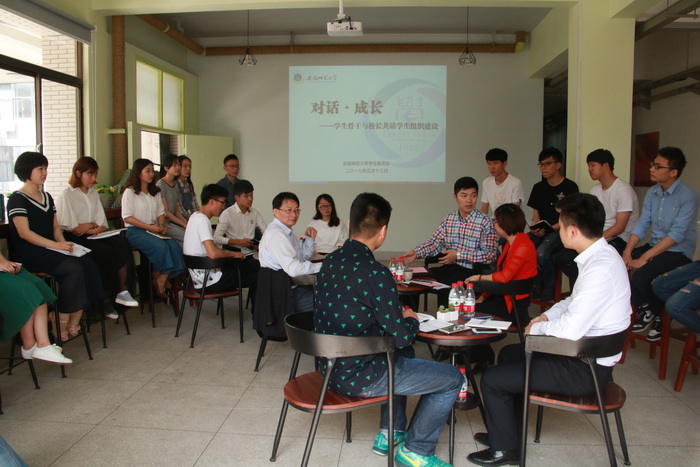 学校高度重视学生的主体地位和学生组织自身建设,将指导学生会等学生组织加强自身建设列为2017年学校认真做好的十件实事之一。校学生会联同学院、班级学生组织开展对话交流会,搭建平台实现学生干部与校长共话学生组织建设,分享心得,促进成长。活动的开展为学校领导倾听同学心声开拓了新途径,也让学校更加了解学生的现实情况与利益诉求。各级学生组织在分享、讨论与交流对学生组织完善自身建设,找准组织定位,更好服务同学明晰了奋斗目标和前进方向。