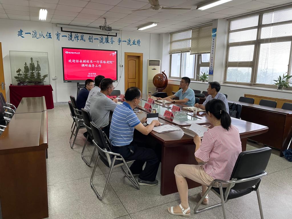 任永指出,历史学院是一个具有悠久办学历史和优良传统的学院,要突出“做强”二字,在提升人才培养质量,提升学科优势等内涵建设上下功夫;要重视“内升外引”,牢牢把握“引、育、用、稳、服、管”六个主要环节;要注重用机制调动积极性,尊重创造性,特别是要关注青年教师的成长和发展。他还就领军人才引进、青年教师发展、管理队伍建设、学校人才制度等问题进行了交流,并提出意见和建议。