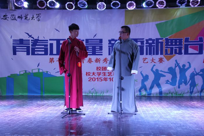 经过班级、院级、校级的层层选拔,最终进入决赛的15个参赛节目,以优良的质量和“走心”的编排别具风采。比赛在器乐演奏《斗曲》中拉开帷幕,赭山大艺团的同学通过西洋乐器和中国传统乐器的碰撞交融,带来了一场百花齐放的视听盛宴。翩若惊鸿,矫若游龙的舞蹈《当美人遇见美人》《冬不拉之歌》霓裳华丽、舞姿婀娜,充分展现了少数民族舞蹈的独特魅力。庄谐并重、笑料百出的相声节目《满腹经纶》结合了社团招新、校园生活等话题进行改编,使学生观众们笑罢亦可深思。戏曲《梨园春秋》将经典戏曲串联融合,带大家领略传统艺术的风采。歌曲《映山红》《青苹果乐园》《南山南》《海阔天空》通过巧妙改编,重现经典,给大家不一样的听觉体验。舞蹈《古韵雄风》结合舞扇、舞剑、拉丁、杂技等元素,用昂扬的气势和飒爽的英姿将比赛气氛推向高潮。最后,由花津校区大艺团带来的朗诵《以青春的名义宣誓》展现了同学们无私奉献、努力拼搏的青春梦想,引领同学们让生命的花朵盛开在祖国最需要的地方,为整场比赛画上圆满的句号。赛后,音乐学院张晓琳老师和新闻与传播学院孙炜锋老师分别对整场比赛作了精彩点评并提出了中肯的建议。