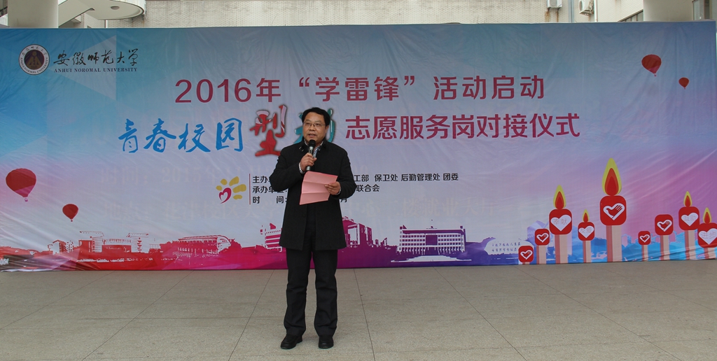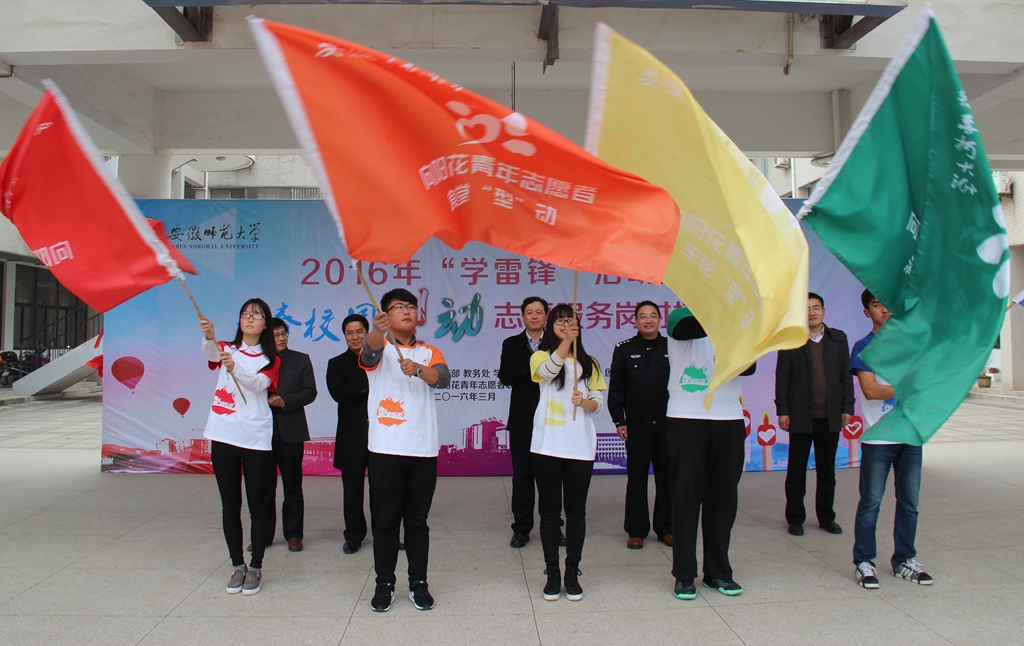 青通社讯(校团委 文/何所惧 魏鑫鑫 图/左德峰)从手边积小善为厚德,从身边化细节为大美。2016年雷锋月,校“向阳花”青年志愿者联合会(以下简称“校青志联”)在全校范围组织开展青春“校园‘型’动”志愿服务活动,助力“五个师大”美丽校园建设。近日,在大学生活动中心举办的“青春‘型’动校园”志愿服务岗对接仪式拉开了2016年全校“学雷锋”活动的序幕。校党委副书记李琳琦、各相关部门负责人、各学院团委负责人以及300余名志愿者代表参加启动仪式。