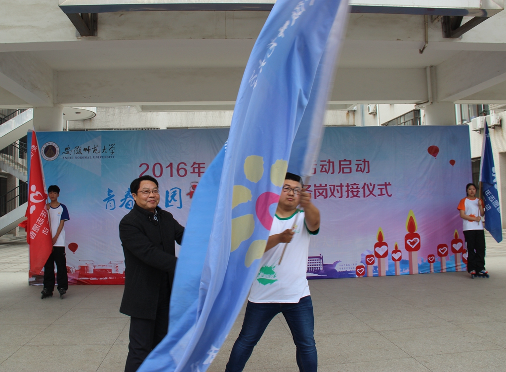 校领导为“向阳花”青年志愿者总队授旗