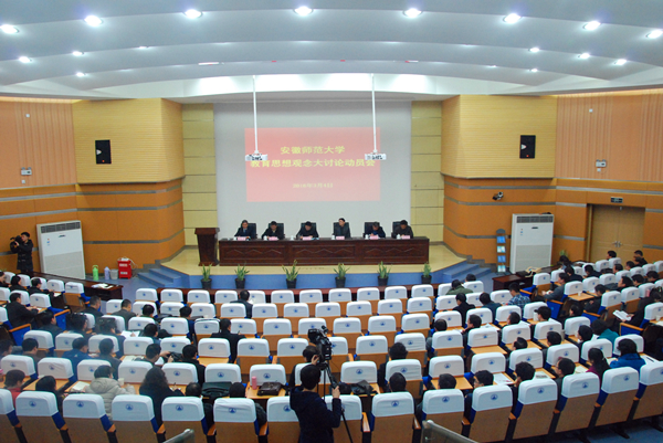 校长王伦在动员讲话中指出,本轮教育思想观念大讨论规模最大、范围最广、议题最多,既是适应高等教育发展新形势、落实我校第十次党代会精神的客观需要,也是学校加强内涵建设、打造办学特色、提升教育质量的内在要求;本轮教育思想观念大讨论,要始终坚持党的教育方针和办学方向,紧紧围绕“好学生、好教师、好课堂、好大学”这一核心议题,在全校各层面、各群体,形成深入持续的大研讨、大争鸣、大碰撞的良好氛围,自上而下、由表及里、条块结合地把真问题谈实、大问题谈细、小问题谈透,进而解放思想、凝聚共识、统一行动,为最终建成国内特色、省内一流、同类领先、师大气派的高水平大学奠定坚实基础。