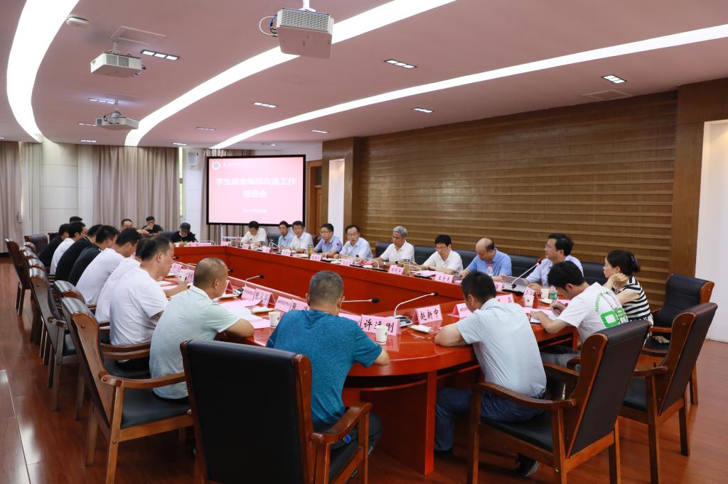 调研结束后,胡朝荣立即在会议中心第一会议厅主持召开学生宿舍维修改造工作推进会。校党委常委、副校长朱家存,学校有关职能部门,施工方负责人参加会议。