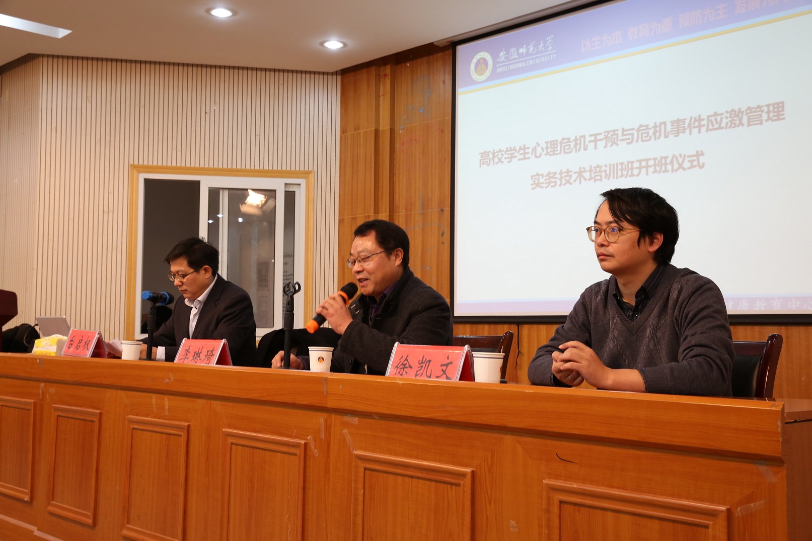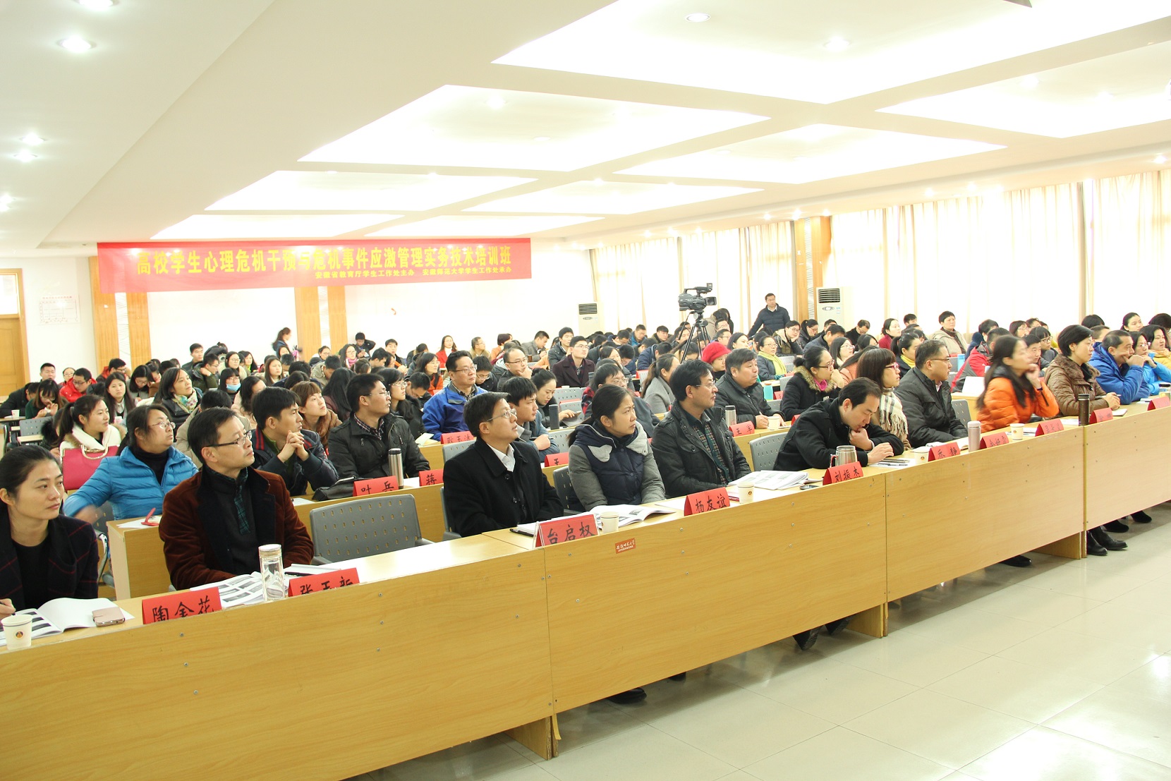 本网讯(学工部 沈艳红)为推进高校心理健康教育工作专业化水平,提高学生工作者应对学生心理危机事件能力,12月12-13日,“安徽省高校学生心理危机干预与危机事件应激管理实务技术”培训班在我校举行。