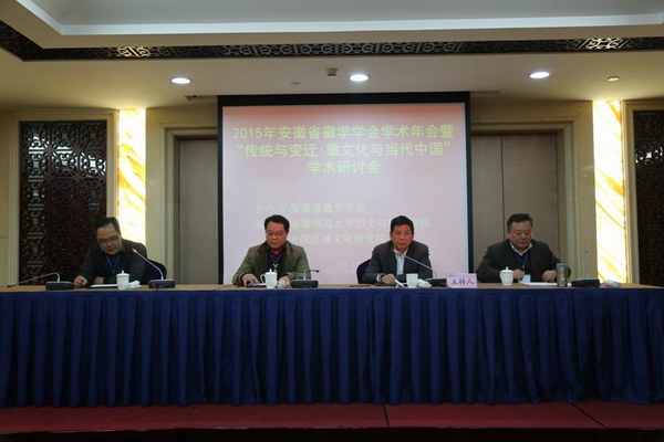 本网讯(历史与社会学院 张旭) 12月12日,由安徽省徽学学会主办,安徽师范大学历史与社会学院和中国区域文化研究院承办的“2015年安徽省徽学学会学术年会暨‘传统与变迁:徽文化与当代中国’学术研讨会”在我校隆重召开。来自省委讲师团、省社会科学院、省社科联、安徽大学、安徽师范大学、黄山学院等20多所大学、科研机构的近百位专家、学者应邀参加了此次盛会。