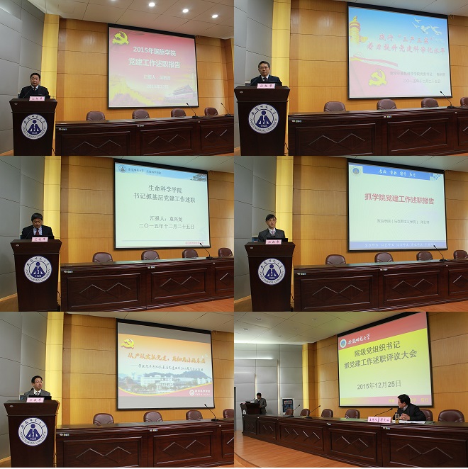 根据省委组织部和省委教育工委部署要求,我校被确定为首批试点开展院系级党组织书记抓基层党建工作述职评议考核的6所省属高校之一。此次述职范围为学校各学院党委书记,述职分为现场述职和书面述职。学校选定国土资源与旅游学院、数学计算机科学学院、生命科学学院、马克思主义学院和教育科学学院等5个学院的党委书记进行现场述职评议,其他学院党委书记进行书面述职。述职采取一述一评一问的方式进行。5位学院的党委书记以图文并茂、言简意赅的形式,分别汇报了各自作为基层党建工作第一责任人的履职情况,以及学院党委在落实基层党建责任方面的有益做法、特色亮点和成功经验,列出了“成绩清单”;也深刻查摆了在履行职责中存在的主要问题,晒出了“问题清单”,并深入剖析症结所在;同时拉出了“任务清单”,明确提出了整改的“路线图”和“时间表”。
