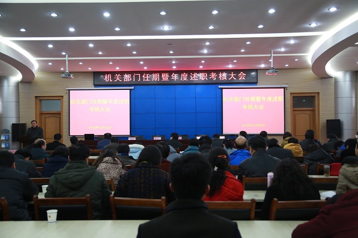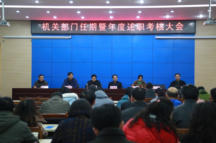 本网讯(党委宣传部 张鑫)12月22日,学校机关部门任期届满暨部门年度工作述职考核大会,在花津校区会议中心二楼报告厅圆满召开。校党委副书记李琳琦,校考核组成员,机关各部门、离退休工作处等单位全体处级干部、正科级实职干部百余人参加了大会。会议由机关党委书记方泓主持。
