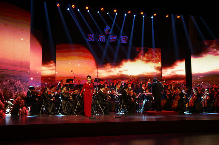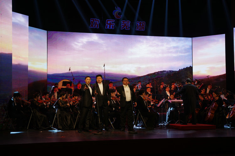 一曲波澜壮阔的《红旗颂》拉开音乐会帷幕,整场音乐会内容丰富,格调高雅,还增添了中国元素和芜湖元素。既有《北京喜讯到边寨》、《春节序曲》等雅俗共赏的民族传统音乐,也有《为艺术,为爱情》、《匈牙利舞曲》、《轻骑兵序曲》、《雷鸣闪电波尔卡》等国外经典乐曲。既有女声独唱《红高粱》主题曲《九儿》的清丽委婉,也有三大男高音《我的太阳》的振奋人心。一曲慷慨激昂的《黄河颂》,更是将音乐会推向了高潮。观众跟随着音乐节拍,时而凝神屏气,时而击节唱和,时而游怀驰骋,尽情陶醉在交响乐中,不时爆发出经久热烈的掌声,乐团返场三次才在《拉德斯基进行曲》中结束整场音乐会。