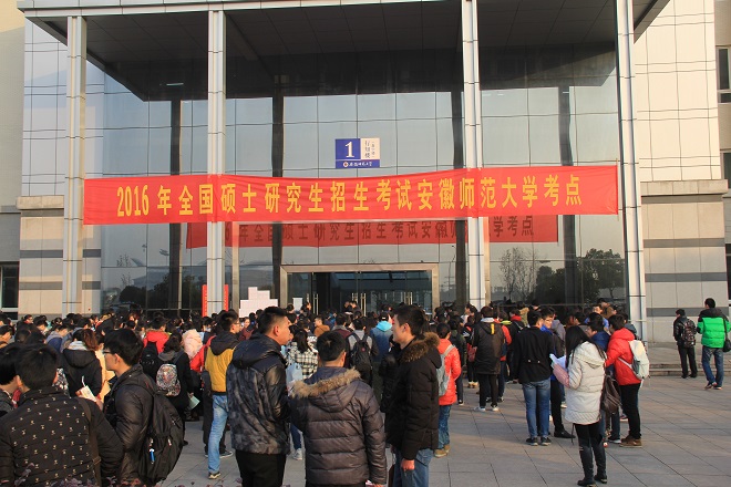 本网讯(研究生院 高媛媛)2016年全国硕士研究生招生考试于2015年12月26-27日举行,我校作为安徽省考点之一,共设186个考场,承担了5450名考生考务工作。在考生人数逐年增加的情况下,考点的试卷分发、考务的组织工作等环节未出现任何差错,考务工作圆满完成。