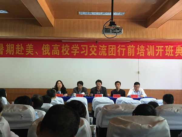 本网讯(国际教育学院 王琪 胡文婷)5月12日上午,由国际教育学院外国语言文化培训中心承办的我校第五期访美代表团以及第二期访俄代表团行前培训开班典礼在国际教育学院报告厅隆重举行。校长王伦出席了典礼并发表讲话。人事处处长朱为民,校外事办副主任、国际教育学院副院长刘东合以及由我校16个院、附属中、小学的38名学科带头人组成的访美、访俄教育代表团成员共同参加了开班典礼,校外事办副主任、国际教育学院副院长杜俊主持会议。