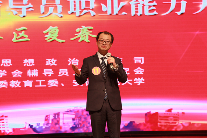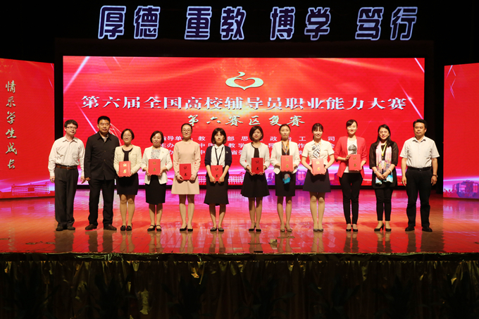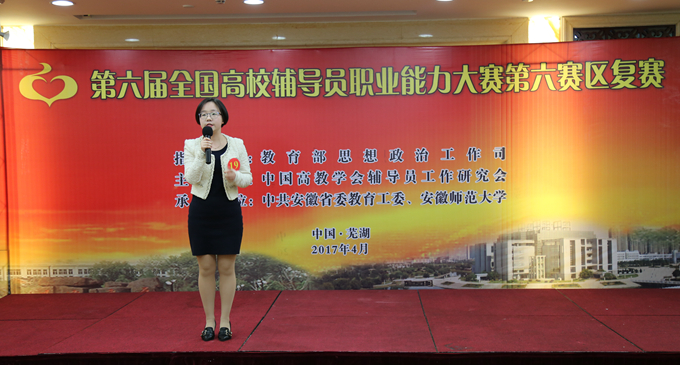 本网讯(学工部 杨一飞 汪 婕)4月17日至19日,第六届全国高校辅导员职业能力大赛第六赛区复赛在我校举行。我校历史与社会学院辅导员宫超与法学院辅导员瞿津津等十名选手代表安徽省参加比赛,宫超获得一等奖,瞿津津获得二等奖。