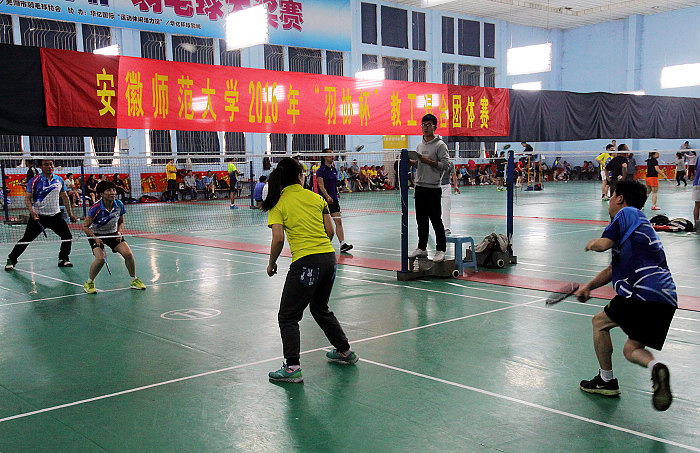 本网讯(校工会 吴佑平) 一年一度的教职工羽毛球混合团体赛,于5月14日在赭山校区羽毛球馆举行。全校22个分工会积极组队参赛,22支代表队、150余名教职工羽毛球运动爱好者集聚球馆,挥拍竞技,分别参加了男子单打、女子单打、男子双打、女子双打和混合双打比赛。为做好参赛的组织、服务工作,各分工会主席和部分单位领导不惜牺牲休息时间,与运动员们一道,共同投入紧张比赛,顽强拼搏的斗志与团结协作的精神充溢了整个赛场,表现出良好的团队精神。