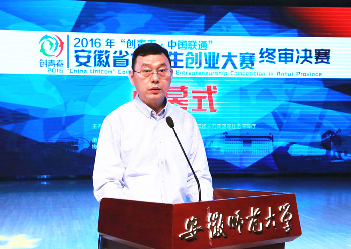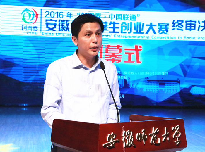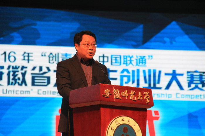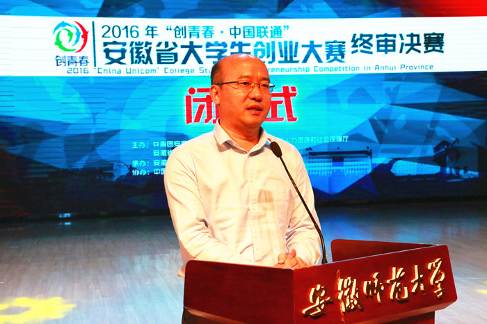 青通社讯(文/校团委 何所惧 张海兵 图/邾强 袁畅)创新创业,青年先行。5月28日至30日,2016年“创青春.中国联通”安徽省大学生创业大赛终审决赛在我校举行。省教育厅副厅长解平、团省委副书记杨正、芜湖市副市长汪华东、中国联通安徽分公司副总经理刘全顺、校党委书记顾家山、党委副书记李琳琦等出席颁奖仪式、作品展等活动。赛评审专家代表和进入终审决赛的37所高校的领队、指导老师、参赛学生及安徽师范大学学生代表900余人参加闭幕仪式。