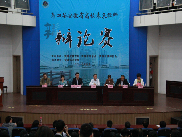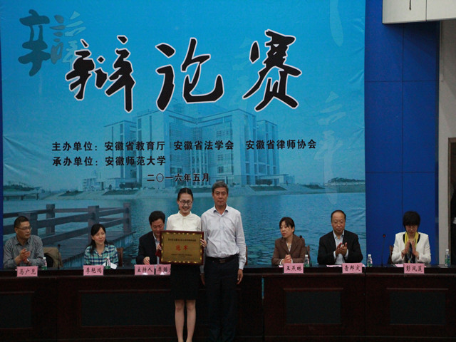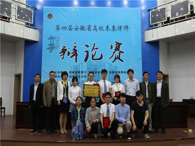 本网讯 (法学院)5月22日下午,由安徽省教育厅、安徽省法学会、安徽省律师协会主办,安徽师范大学承办的第四届安徽省高校未来律师辩论赛在我校圆满落下帷幕。全省共有19支高校代表队参加,比赛历时3天,经过初赛、复赛、半决赛、季军赛与决赛共28场角逐后,安徽师范大学、阜阳师范学院、安庆师范大学代表队,分别荣获本次辩论赛的冠军、亚军、季军,安徽师范大学魏建中同学荣获“最佳辩手”称号。