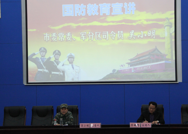 本网讯(人武部 齐怀峰)为进一步开展国防教育,激发大学生参军报国的政治热情,推进征兵工作,根据省国教办、省教育厅、省征兵办联合部署,5月18日下午,芜湖市委常委、军分区司令员吴小明在花津校区敬文图书馆报告厅做了2016年国防教育专题报告。校党委副书记李琳琦主持报告会。校人武部负责人、各学院党委副书记、全体专兼职辅导员及部分学生代表共400余人聆听了报告。
