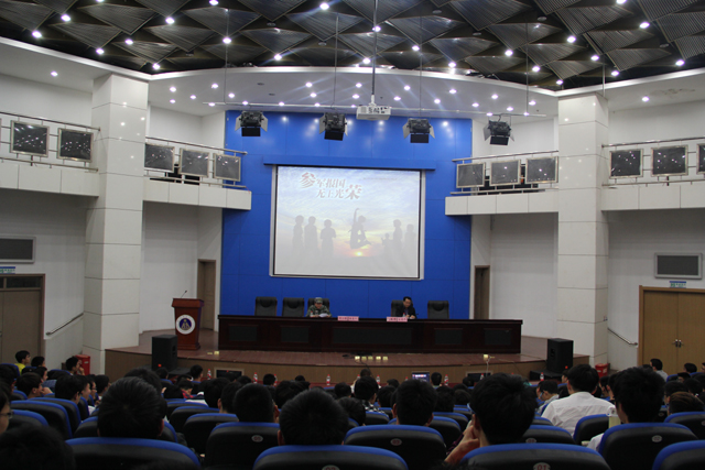 吴小明在报告中,首先分析了国际国内安全形势,重点讲解了伊斯兰国、日本新安保法案、欧洲难民危机、法国恐怖袭击、朝鲜核危机、台海、南海等热点问题;然后讲解了2016年大学生应征入伍的身体条件、政治条件、入伍流程及国家有关入伍优惠政策;最后就大学生关心的问题进行了细致的回答。吴小明的报告深入浅出,准确的把握了问题的实质,内容丰富、发人深省,其独到见解引起了现场师生的强烈共鸣,博得了阵阵掌声,激发了同学们参军报国的热情。