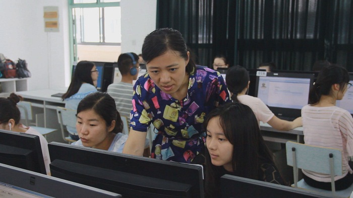 (图为王瑜指导学生进行大学英语第二课堂学习)