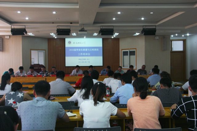 6月17日,学校召开毕业生派遣与文明离校工作专题培训会,组织部、学生工作处、保卫处、后勤管理处、团委、信息管理中心、图书馆等部门具体经办老师和2015届优秀毕业班辅导员到会对全体毕业班辅导员开展业务培训,并现场解答了工作中有关具体问题。
