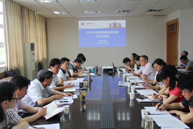 本网讯(后勤管理处 井方明)6月22日上午,学校召开专题协调会,部署推进2016年暑期基建维修工作,副校长毕明福出席会议并讲话,相关部门、单位负责人,各学院(含皖江学院)党委副书记或行政副院长参加会议。后勤管理处处长邵登辉主持会议。