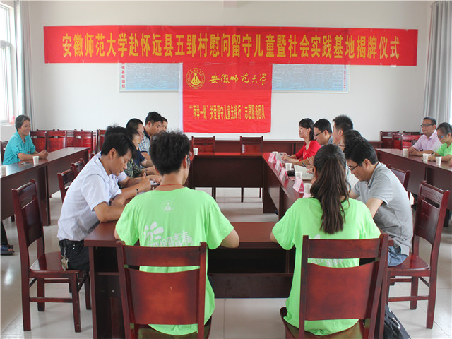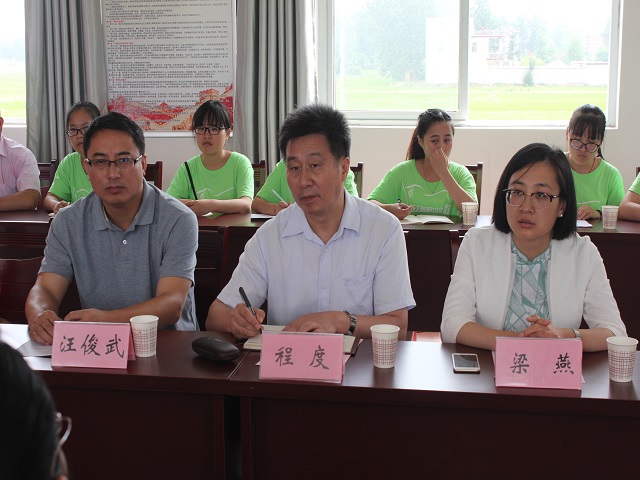 程度一行的到来受到了实践地的热烈欢迎。在五郢村的村委会议室召开了双方的交流座谈会,怀远县政府副县长陈春霞、副县长贾良清、怀远县教育局局长崔伟、古城镇镇长、五郢村负责人以及实践团队队员参加了座谈会。座谈会上,怀远县副县长陈春霞感谢化材学院志愿者在实践地点的辛勤付出,为当地教育扶贫工作的开展带来一股强劲的活力。实践团队队员代表潘迪汇报了团队前期活动开展的情况,活动开展过程中一个个感人的故事温暖着在座的每一个人。程度对实践地的支持表示了感谢,指出暑期社会实践是大学生成长的维他命,勉励实践团队队员在青春奉献中获得成长的养分。