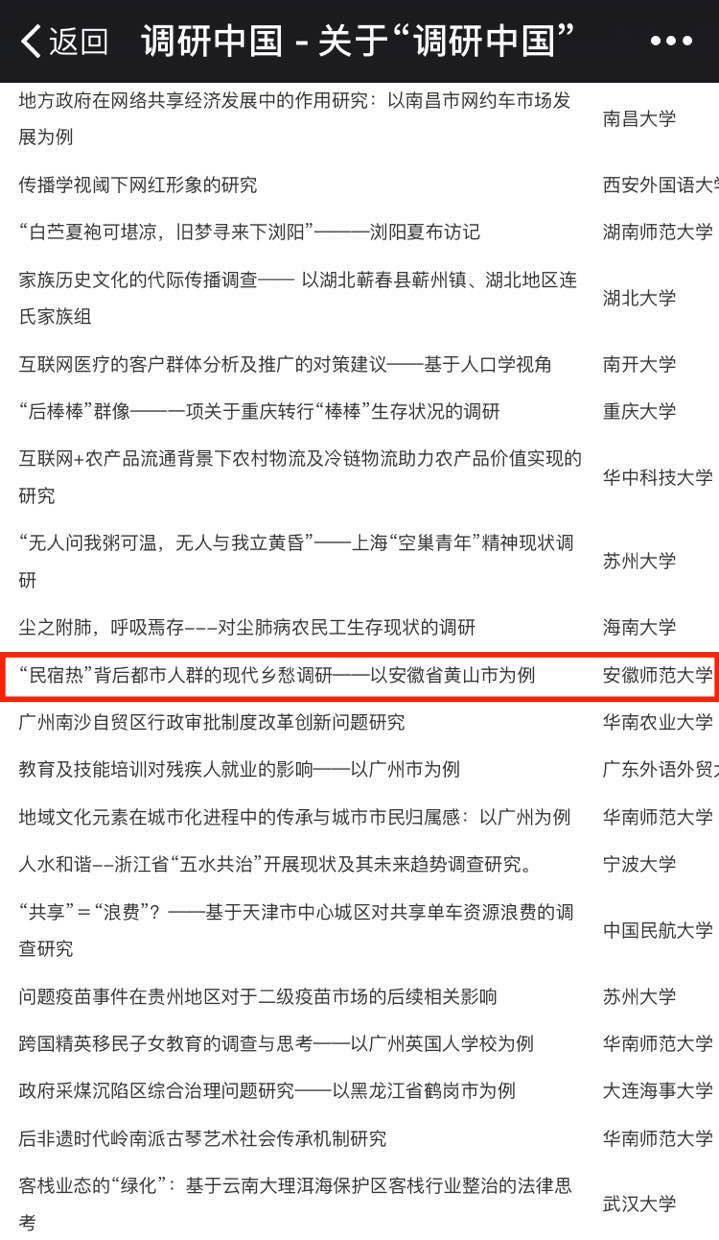 据悉,民宿调研团队是2005年以来新闻与传播学院第一次入选,师大继法学院后第二个入选,安徽省继安徽大学后第四次入选南风窗调研中国项目的团队。