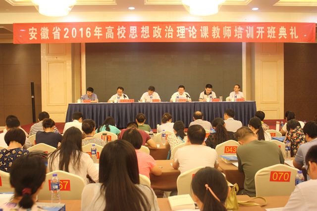 本网讯(马克思主义学院 汤小宾)7月11日,由中共安徽省委教育工委主办,安徽省高校思想政治理论课教师培训基地、安徽师范大学马克思主义学院承办的安徽省2016年高校思想政治理论课教师培训在我校成功开班。省委教育工委副书记王佩刚,安徽师范大学党委书记顾家山、副书记李琳琦,省教育厅思政处处长林鑫德、副处级调研员张英明出席开班典礼。来自全省101所高校的385位思想政治理论课教师参加此次培训。开班典礼由李琳琦主持。