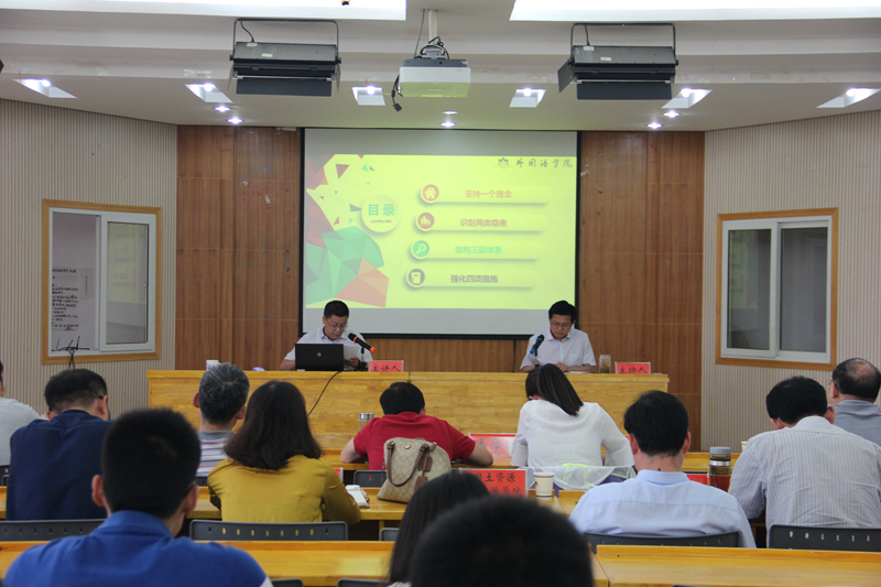 培训会上,保卫处长孙成岗做了学生安全工作管理专题报告。他从目前校园安全形势评估入手,通过学工队伍安全角色定位、工作理念、安全教育的内容和形式等七个层面对我校学生安全管理工作做了系统的介绍与分析,并对做好安全管理工作提出了防止“短板”效应、“青蛙”效应和“弹簧”效应的三点思考。接着,外国语学院党委副书记汪贻洋以学生宿舍安全管理的角度为重点,做了题为“强意识,抓落实,多措并举保安全”的经验交流;数计学院辅导员李妍以“与时间赛跑”为题,分享了一起高效、稳妥处理学生突发事件的案例。随后,台启权结合当前学生安全工作面临的形势和问题进行了剖析和阐述,并就今后学生安全工作做出具体要求。他强调要在守土有责、教管有度、零责任事故的总体要求下,坚持严与爱相结合、教与管相结合、教育与自我教育相结合,认清当前安全新问题,抓住重点时段、重点群体和重点地域,严守学生安全管理制度,充分利用信息化手段,善于发挥学生的“四自”作用,杜绝责任事故。他还提醒各学院要仔细梳理学生租房、宿舍消防、校外兼职和晚归不归四个方面的情况并做好教育管理工作。