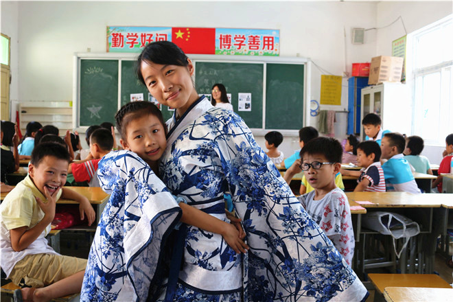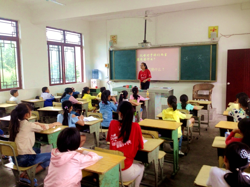 当安师大文学院赴阜南县国学支教团队虔诚地宣读出他们的宣誓词时,他们就已决意将国学的种子播种在每一个阜南孩子的心中。在15天的实践过程中,队员们围绕文学教学这一主线,用故事解读《论语》,用吟唱品读《诗经》,用汉舞演绎唐诗宋词,用诵读感悟春秋遗风。