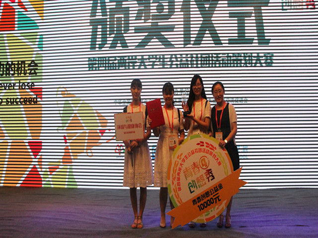 本网讯(环工学院 陈亚力)青春中国梦,创想赢未来。8月13日,第四届“青春创想秀”暨两岸大学生公益社团活动策划大赛总决赛在福州海峡国际会展中心举行,由海峡两岸大学生社团策划的共10个参赛项目进行了激烈的角逐,环工学院“蒲公英环保学校”晋级10强斩获二等奖,并获得了1万元的“青春创想”奖金。