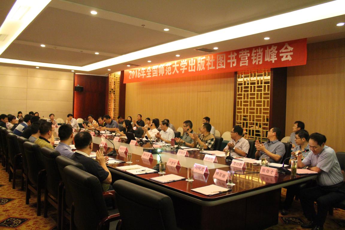 本网讯 9月7日- 11日,由我校出版社举办的第24届全国师范大学出版社图书营销峰会在合肥举行。出席本次图书营销峰会的有全国12家师范大学出版社的社领导、发行部主任和营销人员,共60余人。安徽新华传媒股份有限公司、皖新传媒教育服务总公司、江苏省凤凰出版传媒股份有限公司、安徽天信集团公司,安徽振乾文化传媒有限公司等单位的领导和嘉宾应邀参加峰会。