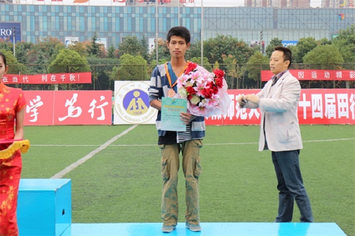 瘦小的身影,黝黑的皮肤,初次见面绝不会想到他在2014、2015年校运动会中,连续两年获得男子5000米长跑铜牌。眼神里透露的那一股为梦想奋斗的执着劲,却告诉我们,青春没有什么不可以,他就是外国语学院2014级英语(师范)专业黄文伟同学。
