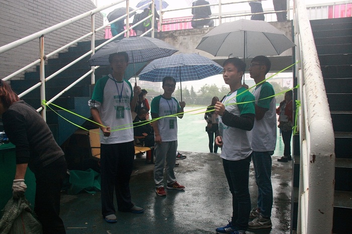 操场那一抹跳跃的鲜绿色,便是来自师大国旅学院的“绿色志愿者”团队,作为一个面向全校师生的志愿者群体,他们的任务量十分繁重。前期忙碌的筹备工作,比赛期间无微不至的服务,他们身体力行,及时为师生送上温暖贴心的服务。尽管工作辛苦,但是他们自豪地说:“我们忙碌并快乐着”。