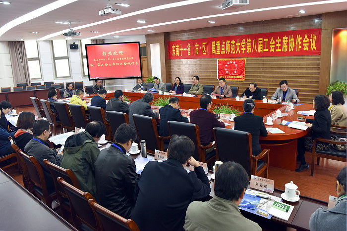 (本网讯:校工会吴佑平) 11月3日,东南十一省(市、区)属重点师范大学第八届工会主席协作会在我校花津校区会议中心开幕。安徽省教育工会主席凤桦、我校纪委书记程度出席开幕式并致辞。参加本次协作会的有福建师范大学、广西师范大学、海南师范大学、湖南师范大学、华南师范大学、江西师范大学、南京师范大学、山东师范大学、上海师范大学、浙江师范大学及我校工会的30余名代表。开幕式由我校工会主席赵红主持。