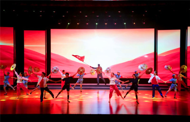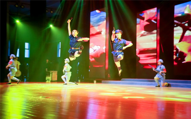 我校选送的舞蹈《红色娘子军》作为文艺汇演的首个出场节目,赢得了现场观众的热烈欢迎。该舞蹈以著名革命现代芭蕾舞剧《红色娘子军》为蓝本,通过紧凑的情节发展,描述了娘子军诞生、发展及军民鱼水情深的感人故事。老师们用优美的舞姿配以跌宕起伏的音乐,真实再现了娘子军飒爽的英姿及军民一家亲的情景。特别是当经典的万泉河水的旋律与军民联欢的和谐场景相映成辉时,引起现场观众强烈共鸣,爆发出热烈的掌声。
