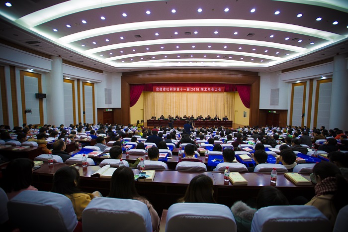 本网讯(科研处 杜凤)12月24日,以“践行五大理念 闯出崛起新路”为主题的安徽省社会科学界第十一届学术年会在合肥举行。省委常委、宣传部长虞爱华出席会议并讲话,省社科联党组书记、常务副主席马雷主持开幕式,来自省内高等院校、科研院所、学术团体、党政机关和企事业单位的专家学者400多人参加了年会。