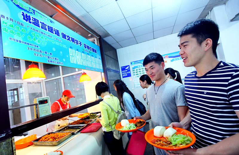 近年来,学校不断加强学生食堂基础设施建设,强化饮食卫生安全管理,注重发挥餐饮文化育人功能,以“五个食堂”创建为抓手,基本实现学生食堂食品源头可溯、过程可控、风险可防、责任可究、满意可评。一是创建“放心”食堂。围绕食品安全,重点把好人员上岗关、采购验收关、服务质量关、餐具消毒关、食品留样关,切实保障学生健康安全。围绕生产安全和消防安全,不断完善工作制度,规范操作流程,定期开展隐患排查和整改工作。通过维修改造,食堂基础设施明显改善,生产设备全面升级,后场环境得以改观。还完成“明厨亮灶”视频厨房建设工程,使学生在用餐同时能够了解加工过程,对后场操作规范进行适时监督,提高了食品安全系数。二是创建“多味”食堂。为更好的满足广大学生餐饮服务多层次、多样化需求,按照“确保基本保障、满足多样需求”的思路,分步对两个校区学生食堂供餐方式进行了优化调整,分设风味餐厅和大伙食堂。在风味餐厅引进各地特色餐饮和受学生欢迎的风味小吃百余种,丰富了校内餐饮供应品种。为做好基本伙食保障,在学生食堂大伙对米饭、菜肴的单价设置高限,并要求保证低价菜供应的比例,确保学生3元吃饱、5元吃好。三是创建“阳光”食堂。食堂原材料实行集中采购、统一配送,多重验收,从源头上保证食品安全。日常管理做到食品加工制作、售卖服务、成本核算等各环节全过程监管,有效预防违纪行为的发生。组织学生参与食堂管理,促进食堂管理更加公开透明,现已形成了以餐饮服务中心和学生组织日常监督管理为主,学校职能部门和政府职能部门专项监督检查为辅的多位一体监督管理体系和常态机制。四是创建“文化”食堂。在餐厅安装了电视机,免费提供了无线网,张贴悬挂了名言警句、科学用膳指南等,努力营造餐饮文化氛围,让学生耳濡目染,接受熏陶。由学生评选“优秀服务员”“最受欢迎菜肴”及“学生满意餐厅”。组织开展“推荐我的家乡菜”等学生炊事实践活动,通过活动让学生感受饮食文化,体会劳动艰辛,锻炼实践能力。五是创建“有爱”食堂。学校的根本任务是人才培养,学生食堂在完成餐饮保障同时,还应积极发挥育人功能。从提供“爱心馒头”到提供免费汤,从供应花津鱼到开展文明特价菜活动,食堂创新育人方式,鲜招不断,受到广大学生和校友的热捧,也得到了主流媒体的高度肯定。人民日报、中央电视台、新华网、中国青年报、安徽日报、安徽卫视等数百余媒体对我校餐饮服务育人的做法进行正面报道和评论。