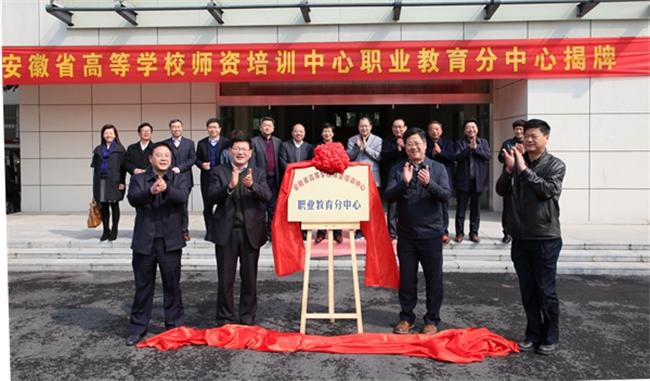王佩刚、顾家山、王安义、孟祥新共同为“安徽省高等学校师资培训中心职业教育分中心”成立揭牌。