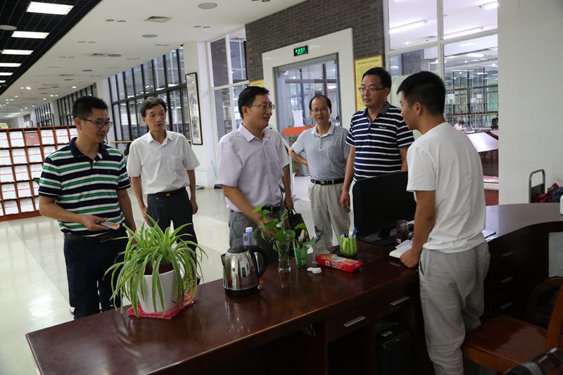 本网讯(学校办公室 王少仁/文 党委宣传部 邾强/图 ) 8月8日上午,校长张庆亮在学校办公室主任曾黎明,图书馆馆长方青、党总支书记程文海等同志的陪同下,走访图书馆,亲切慰问暑期在图书馆认真学习的学生。