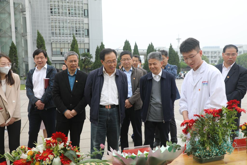 5月13日,校党委书记胡朝荣,校党委常委、副校长陆林,学校办公室、组织部、宣传部、学工部、研工部、团委以及各学院负责同志来到学校敬文图书馆前,现场参观课程思政成果展览。现场,获奖学生代表向胡朝荣介绍了各自作品的内容和初衷。胡朝荣认真观看、聆听了每个展区的作品及介绍,不时驻足仔细观察,对活动给予了高度肯定。他指出,“青春绘祖国·红心永向党”系列课程思政教育活动成果展,充分发挥了学生的积极性与创造性,是一次课程思政的探索与创新。有新意,有创意,有较强思想政治工作理论与实践意义,各学院要认真总结这些好做法、好经验、好典型,形成可复制可推广的经验成果,继续传播出去、传承下去。