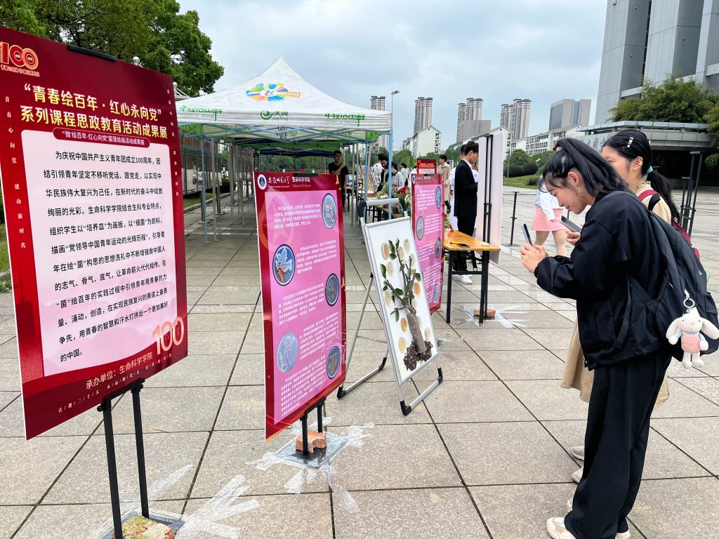 今年3月,学校发起了“青春绘祖国·红心永向党”系列课程思政教育活动,全校各学院充分发挥专业特色,举办了“手绘祖国”地图绘制活动、“‘微’绘百年”菌落绘画、“‘晶’制传承”晶体制作、“‘电’亮未来·红心向党”电子元器件暨物理教具科普作品展、“逐影青春”文化海报设计、“追忆容颜”肖像画创作、“‘计’叙岁月”网页设计、“‘叶’笔生画”植物标本创作、“‘数’说青史”展览宣讲、“翰墨丹青”手抄报创作、“音符跳动”百年音乐作品展、“匠心育人”百年体育成就展、“‘花’述青春”花艺设计展等红心向党特色课程思政活动。万名学子积极参与,在全校掀起了课程思政学习热潮。
